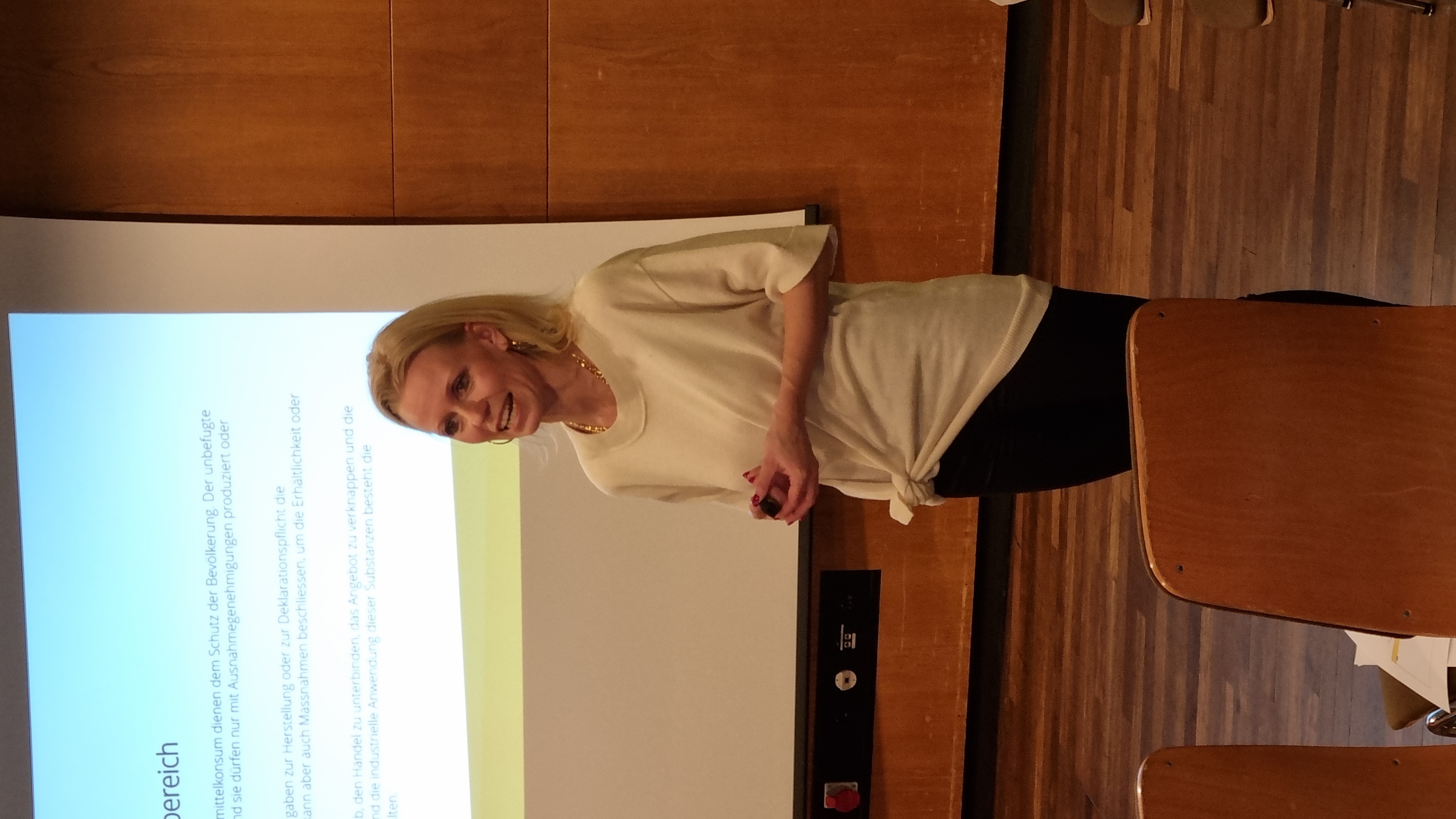In einem zweiten Teil des Referats ging Lilian Studer auf die Volksinitiative «Kinder ohne Tabak» ein. Sie zeigte den dringenden Bedarf auf, die Kinder und Jugendlichen vor dem Rauchen zu schützen. 57% der Raucher haben als Minderjährige begonnen. Das durchschnittliche Einstiegsalter liegt bei 14 Jahren. 14% der Todesfälle in der Schweiz sind auf das Rauchen zurückzuführen. Dies sind 9500 Personen pro Jahr, was etwa der Bevölkerung von Embrach entspricht. Wer einmal mit Rauchen begonnen hat, hört kaum wieder auf. Die Werbung zielt daher auf Neukunden. Dies sind vor allem Jugendliche. Es ist erwiesen, dass das Risiko, mit dem Rauchen zu beginnen, steigt, wenn man regelmässig der Tabakwerbung ausgesetzt ist. Der Politik wurde bewusst, dass sie etwas gegen das Rauchen tun muss und sie hat deshalb das Tabakproduktegesetz entworfen. Darin ist z.B. die Werbung im Kino und auf Plakaten verboten. Nicht berücksichtigt werden darin jedoch die sozialen Medien, die Gratis-Zeitungen, das Internet und Festivals, die von vielen Jugendlichen besucht und konsumiert werden. Dem will die Initiative «Kinder ohne Tabak» abhelfen indem sie alle Tabak-Werbung an Minderjährige verbietet. Zudem enthält die Initiative auch einen Abschnitt, der die Gesundheitsförderung etabliert.